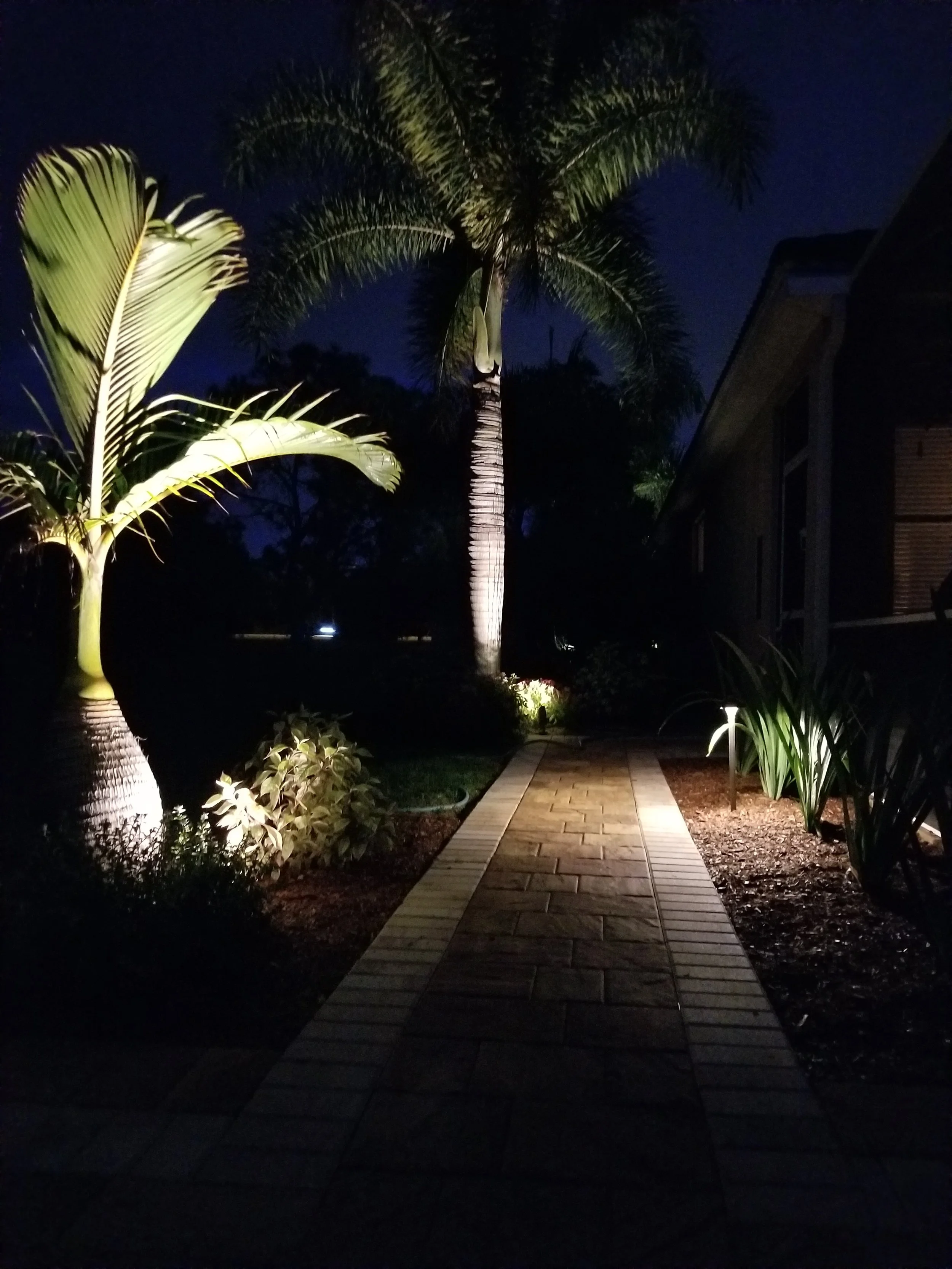 Transform your outdoor space with professional LED landscape lighting that enhances the tropical beauty of your property. We design lighting to accent palm trees, showcase flower beds and raised planters, and define the clean lines of your hardscapes and walkways.